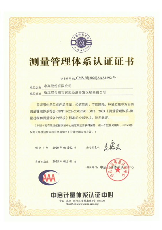 测量管理体系认证证书