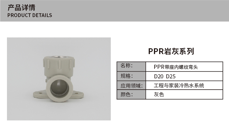 ERA公元岩灰色系列PPR管件 PPR弯头带座带耳内螺纹弯头