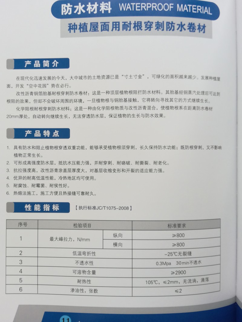 无忧防水材料 种植屋面用耐根穿刺防水卷材