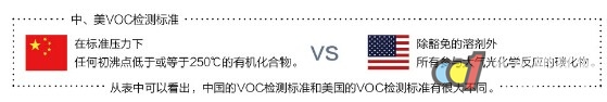 正因为涂料与室内空气污染存在关联,国际上都对内墙乳胶漆的相关数值进行了规范,但不同地区,执行不同的标准。我们常常发现很多涂料产品的VOC含量标注为“未检出”,但是“未检出”真的表示低VOC甚至零VOC吗?中国的VOC含量未检出是指按照国标未检出,就是低于国家标准的检出限,或者不含有初沸点低于或等于250°C的有机化合物,并非不含VOC,甚至从原料上来说,初沸点高于250°C的有机化合物有可能含有更多毒素。而美国的检测标准则没有限定。在美国标准中,除豁免的溶剂以外,其它所有参与大气光化学反应的有机化合物均属于VOC,检测标准非常严苛,远高于中国标准。