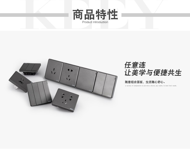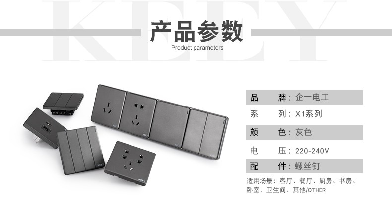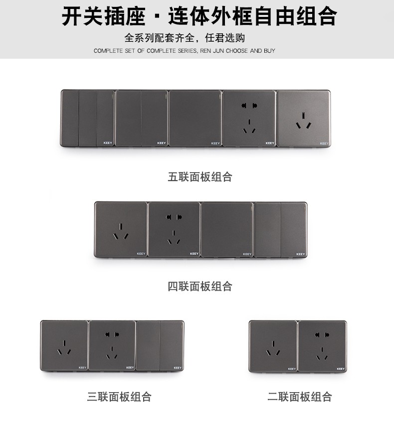 企一照明 开关插座墙壁暗装五孔插座电源10A一开双控套装开关插座 五孔插座
