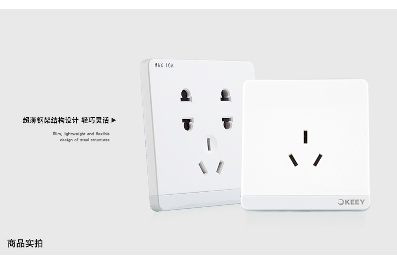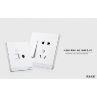 企一照明A6系列白色五孔插座带开关家用墙壁暗装电脑网络插座面板 五孔插座