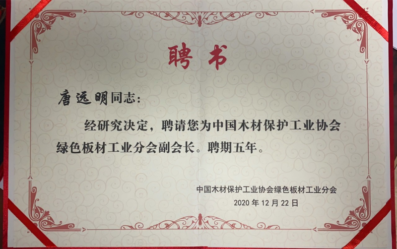 在此次绿色功能板材高质量发展研讨会上,云峰莫干山获得“中国功能板材领军品牌”和“中国绿色板材十大品牌”两项重量级的授牌,云峰莫干山副总经理唐远明被聘任为中国木材保护工业协会绿色板材工业分会副会长。
