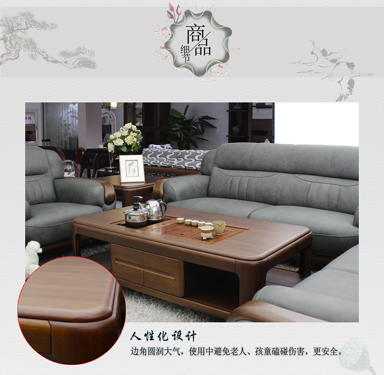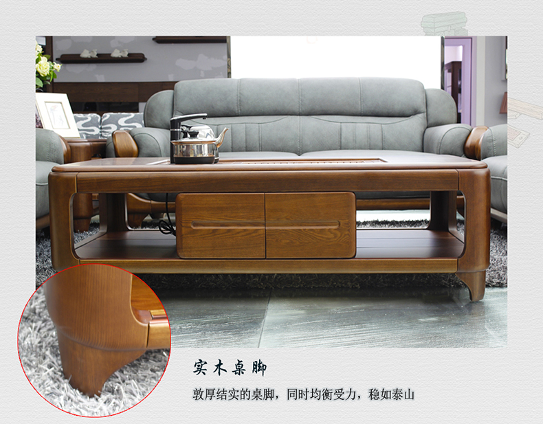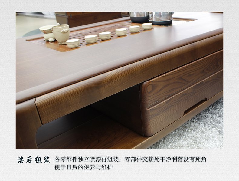 双叶家具 现代中式实木家具茶道茶几多功能长方几角几水曲柳客厅