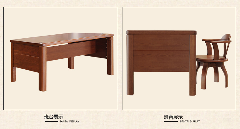 双叶览众系列 实木水曲柳班台 现代中式书桌办公桌