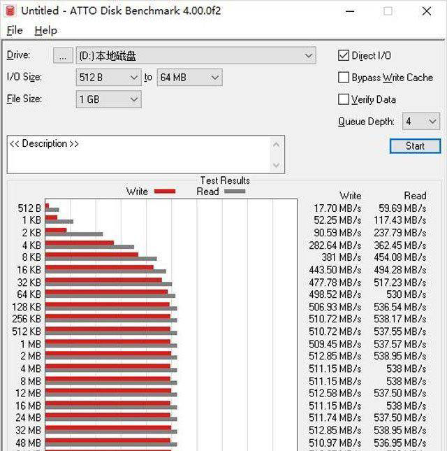 而固态硬盘就有很大的不同了,首先闪存的读取比写入更快,这是MLC、TLC闪存天生决定的,压根不需要专门为读取做缓存。在ATTO测试结果中代表读取速度的灰色条总会比代表写入的红色条更长一些:
