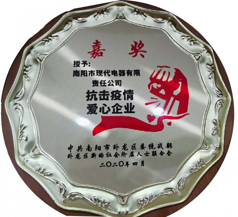 授予“南阳市现代电器有限责任公司”抗击疫情爱心企业