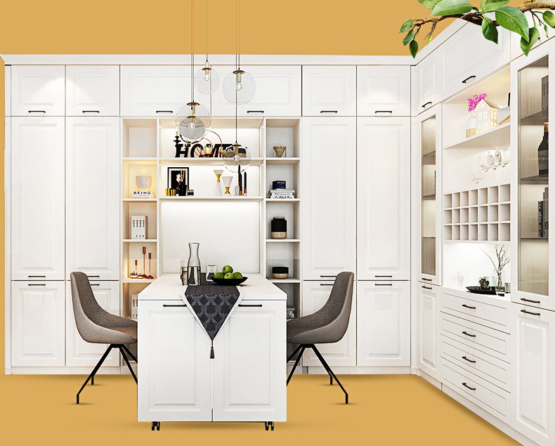 3.现在大多橱柜都是整体的,如果有出现问题,更换是就是大工程了。所以,在橱柜制作时,要在柜门的内外两面都装上饰面板,这样防止柜门变形。