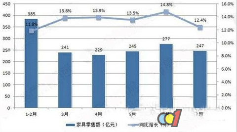 2016年10月初,多地城市接连出台楼市调控政策。在这样的大背景下,2016年第四季度商品房销售面积同比增长有所放缓,但14.43%的增长率依旧位于近年来高点。从2017年两会政府工作报告中可以看出,三四线城市去库存依旧是今年重点工作,三四线城市房屋装修持续利好家具行业发展。