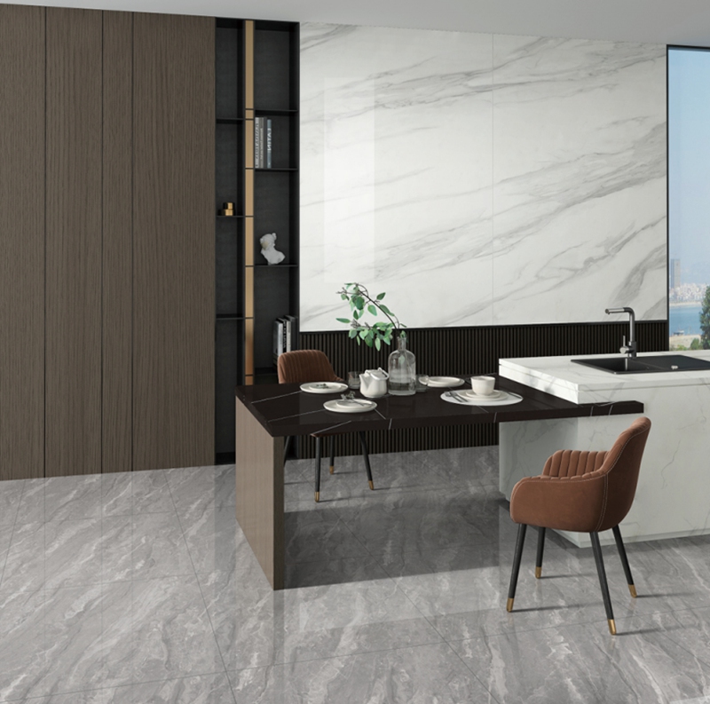 (3)厨房与餐厅应用:升华岩板经由1250℃高温烧结而成,具有抗高温、抗高压、防水防火防腐蚀防变形的作用,是可以直接接触食品的安全材料,美感与实用性二者兼具。