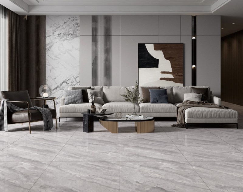 800x800mm连纹产品,采用先进的全通体技术,砖面坯底纹理浑然一体,表里如一,加工切割灵活自由,复刻石材天然纹理,采用进口釉料并结合突破性技术,使砖面表面更自然通透,立体感更强,逼真呈现天然大理石质感。