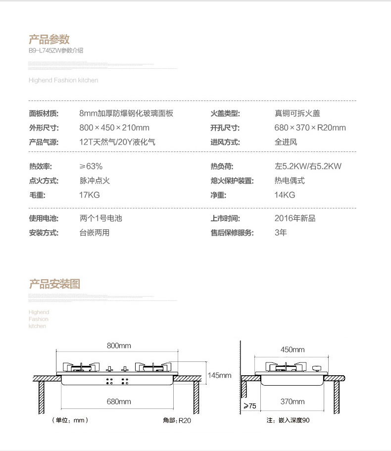 - 烟机安装尺寸:900mm±50mm(烟机宽度)