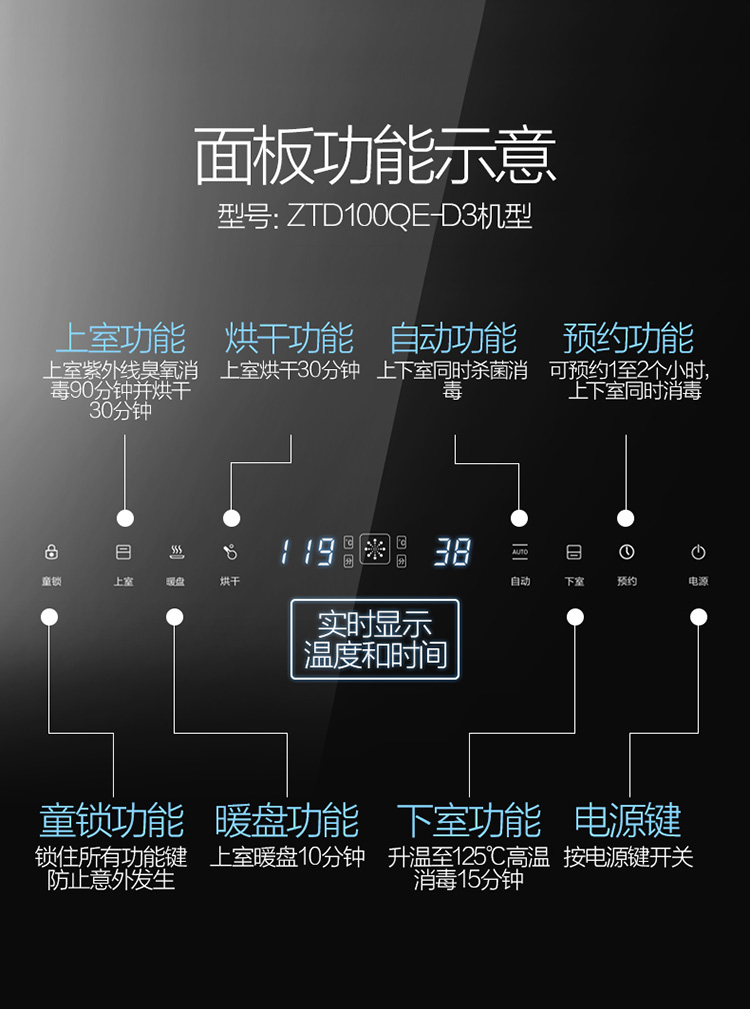 - 特色推荐:童锁保护,触控控制,烘干,上下分层,二星级,预约定时,大容量