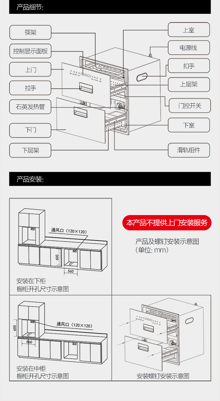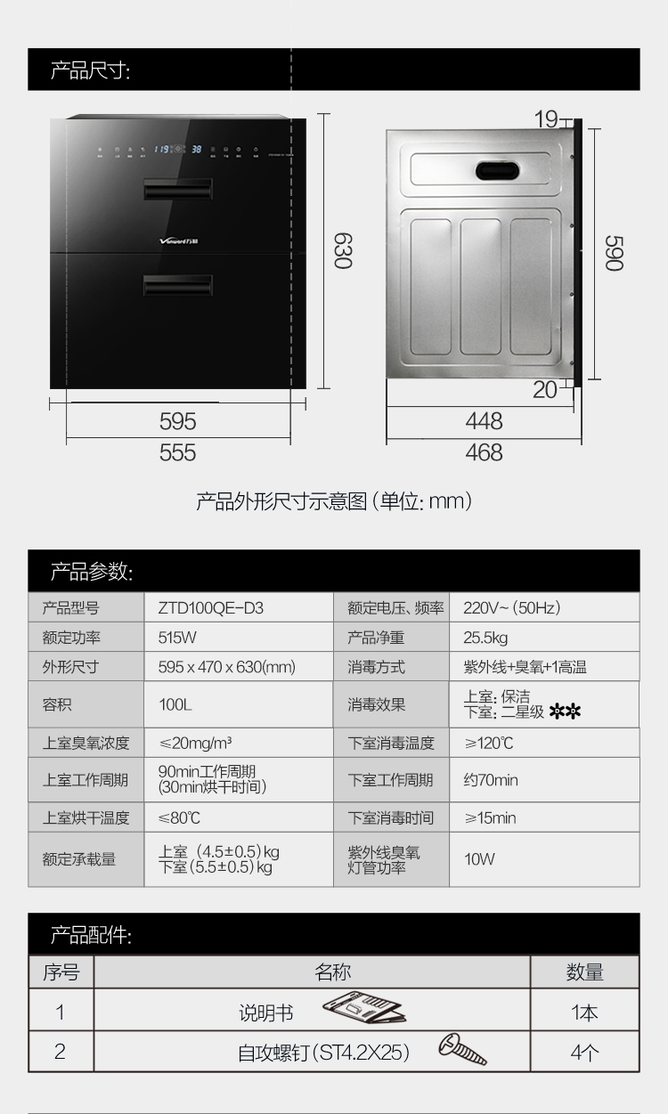 详细信息 万和 (Vanward) 全自动嵌入式消毒柜/碗柜 嵌入式 消毒柜 家用 消毒碗柜 消毒柜 ZTD100QE—D3