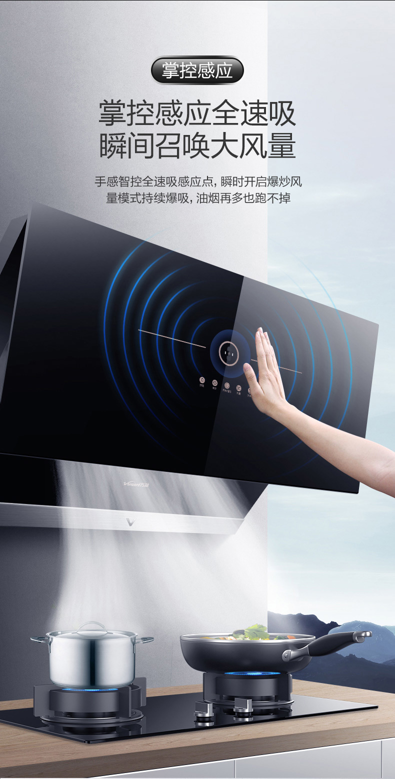 万和22立方米大吸力侧吸式挥手感应自清洗家用抽油烟机燃气灶具