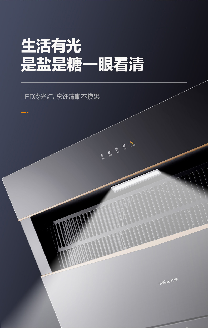 万和侧吸式抽油烟机20立方米大吸力一键热清洗 钢化玻璃大面板