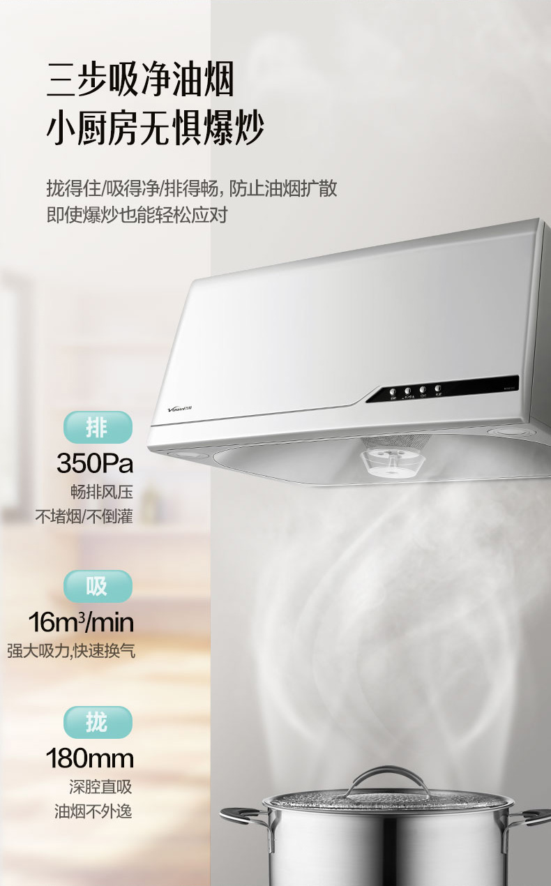 万和中式抽油烟机16立方米大吸力一级能效 易清洗 吸油烟机