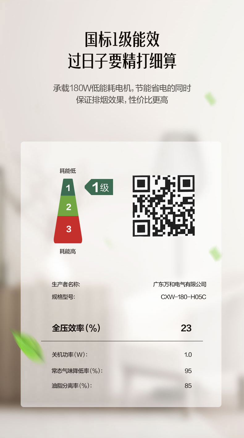 万和(Vanward)中式抽油烟机 16立方米大吸力 一级能效 易清洗 吸油烟机 CXW-180-H05C