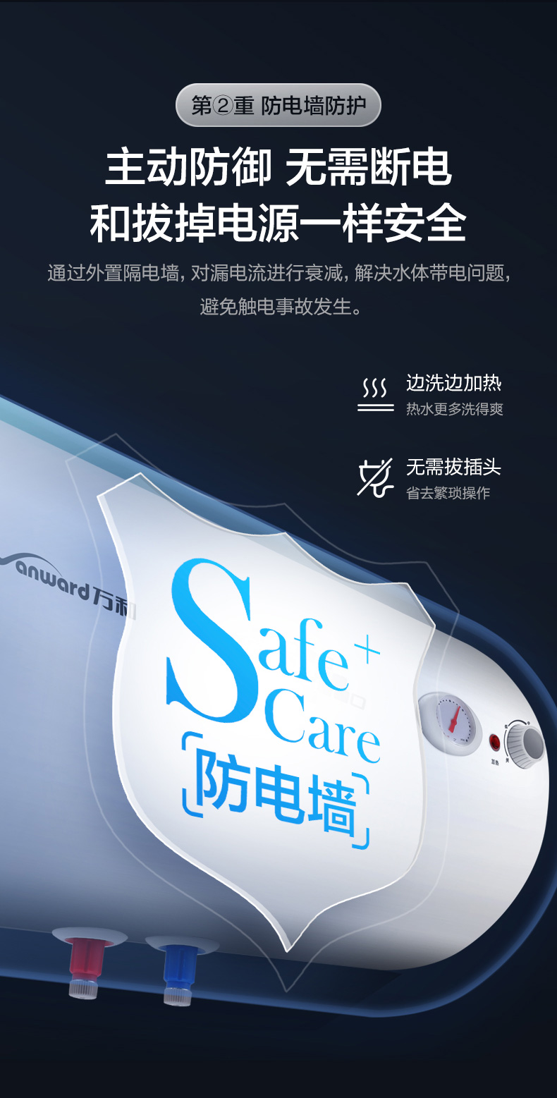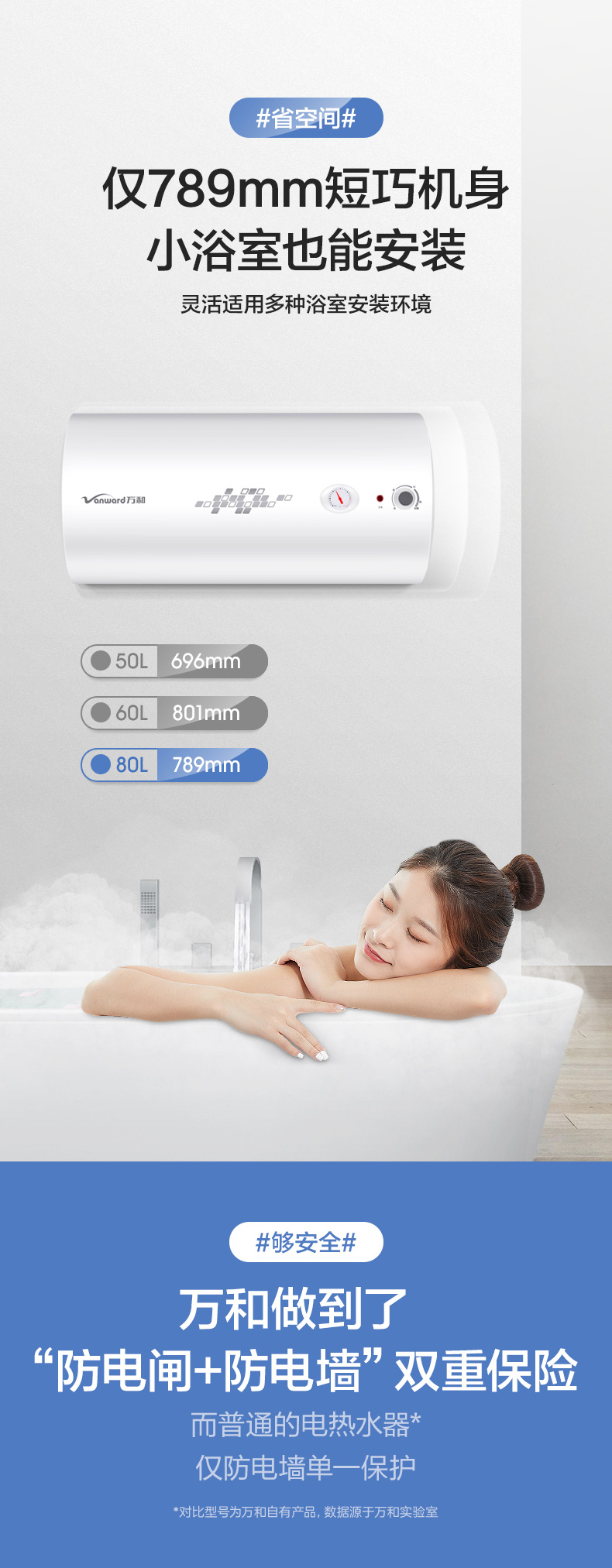 万和80升双防电盾双重防 温显型家用商用电热水器