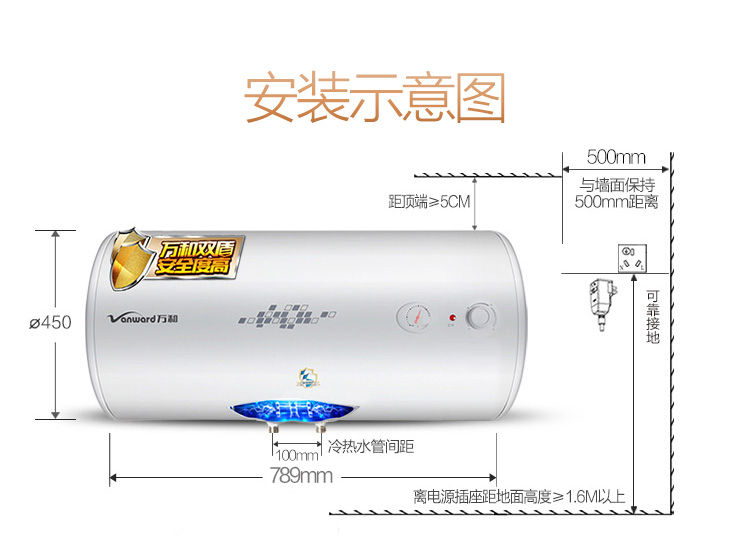 详细信息 万和(Vanward)80升双防电盾 双重防护 温显型 家用 商用 电热水器E80-T4-22
