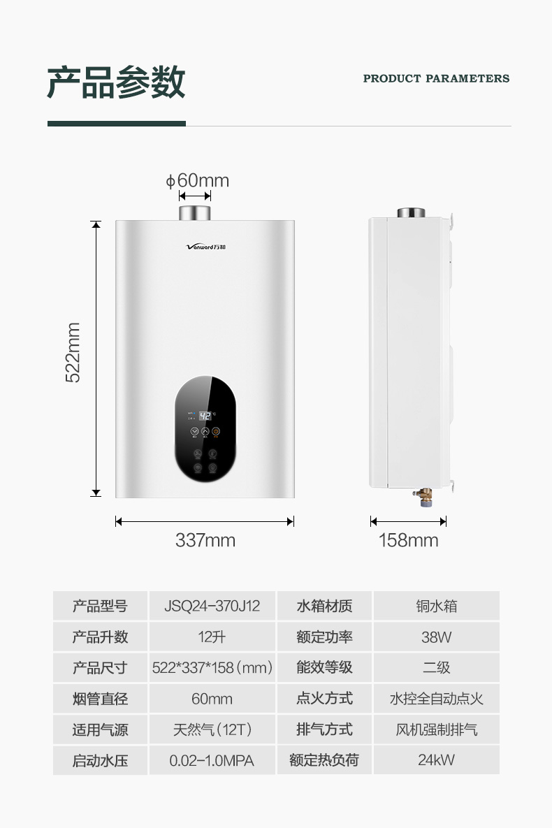 万和 (Vanward )12升燃气热水器家用热水器66重安全防护AI智能私人定制JSQ24-370J12(12T)