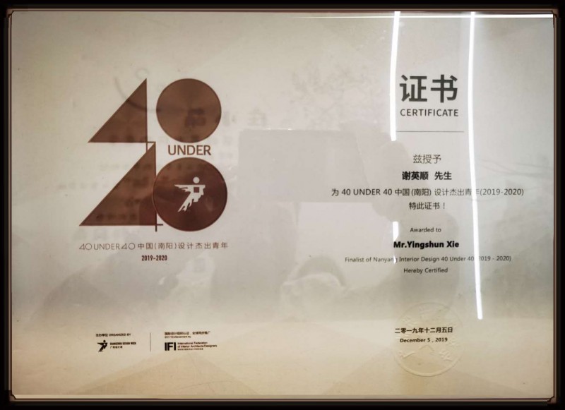 兹授予:谢英顺 先生 为 40 UNDER 40 中国(南阳)设计杰出青年(2019-2020)