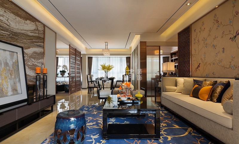 ??? 本案例是龙达新天地140平四室两厅新中式风格的装修案例。这个案例中将中式元素和现代元素很好的结合在一起,既可以满足大家对中式的喜爱,又不会太沉稳,尤其是其中时尚元素的加入,更是显得高级了很多,这样的新中式装修才是我们想要的新中式希望这套装修案例能给大家带来一些灵感。