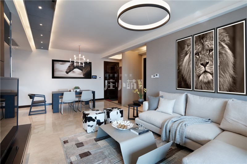 本案例是龙都花园130平三室两厅现代简约风格的装修案例。现代简约风格也是当下主流装修风格,以简洁的表现形式来满足人们对空间环境感性和理性的需求,简洁明快,以少胜多,以简胜繁~虽然简约却不简单。希望这套装修案例能给大家带来一些灵感。