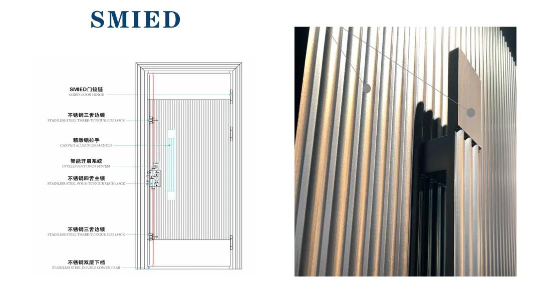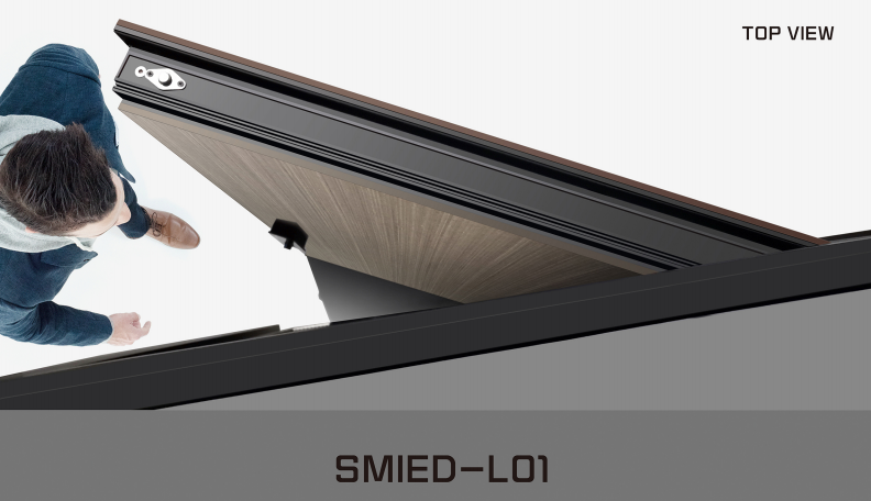 【SMIED-L01】造型简约时尚,双色门面精致大方,层次分明、扎实稳重,安全性能极其优异。铝板底座的门板,模拟铜版转印拉丝工艺的表面,兼顾了门板的质量和制造成本。