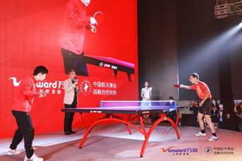 万和集团董事长卢楚隆与孙颖莎乒乓切磋