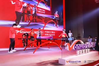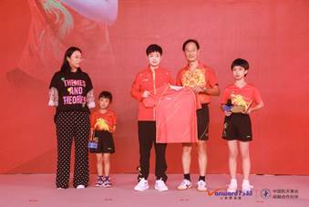 此外,在发布会现场,万和集团董事长卢楚隆还与孙颖莎进行了一场“乒乓切磋”,双方的精彩表现赢得了现场的一阵阵欢呼和热烈的掌声。此外,还有两位可爱的小朋友作为乒乓球的小粉丝和爱好者上场与孙颖莎进行了友好地互动。随后,孙颖莎还现场签名球衣球拍赠送卢楚隆董事长及两位小粉丝纪念,卢楚隆董事长也代表万和向孙颖莎送出颁芙高端套系的产品作为回礼。
