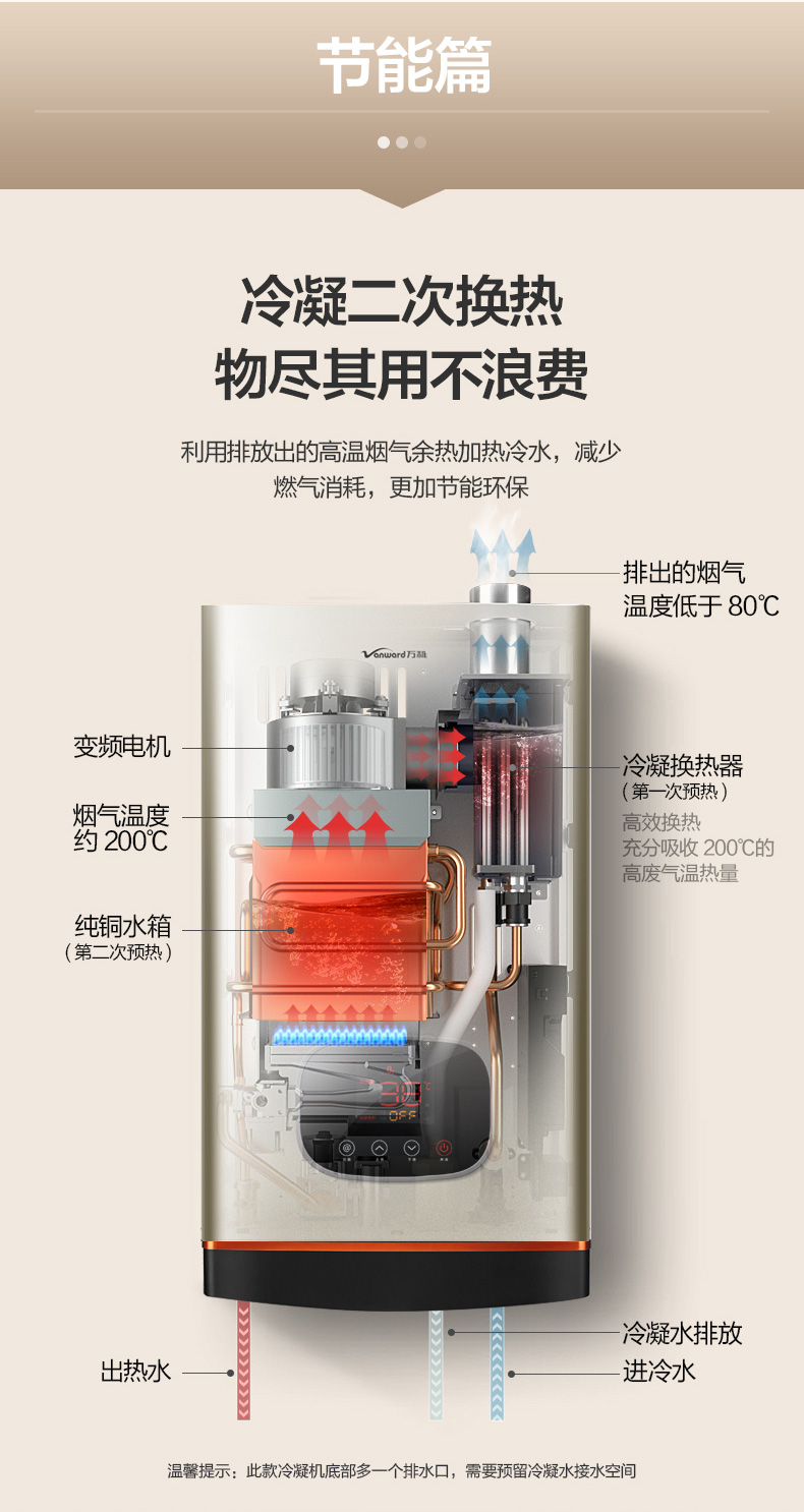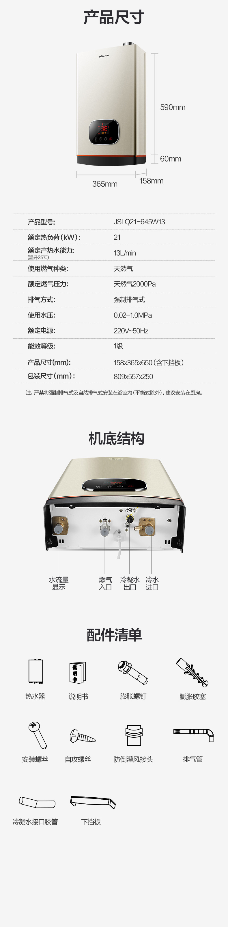 万和645W13冷凝节能智能恒温天然气燃气热水器电家用恒温强排13升