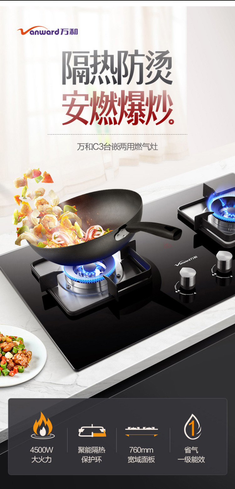 万和C3猛火煤气灶双灶天然气液化气大火力燃气灶台嵌入式家用炉具