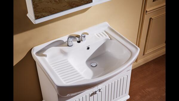 JOMOO九牧80公分落地式带搓衣板浴室柜A1185 815*585*1900mm 白色和红色可选 橡胶木+多层实木 自洁釉陶瓷盆 不锈钢缓冲铰链 无铜环保镜 不含水龙头(需配双孔抽