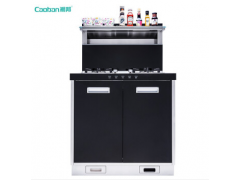潮邦G7防爆玻璃面板漏气自检集成一体灶 家用环保集成灶油烟机灶具102L不锈钢储物柜烟灶联动套装 黑色 液化气