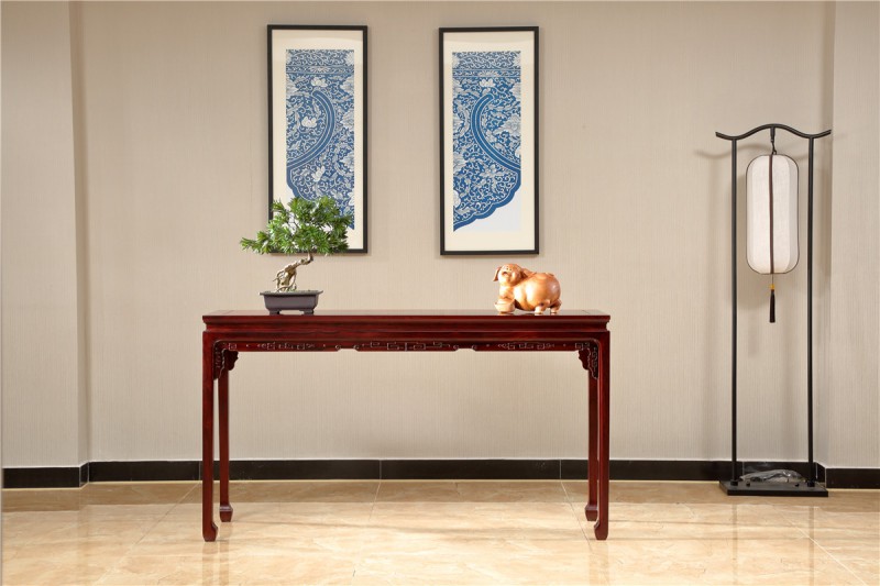 条案,亦可叫条几,是一种古老的中国家具,一般置于中堂下侧,桌椅后侧,用于摆放-装饰品之类物品,案面为窄长的条形,宽度约为长度的十分之一,属于长方形的承具,与桌子的差别是因脚足位置不同而采用不同的结构方式,故称“案”而一般不称“桌”。