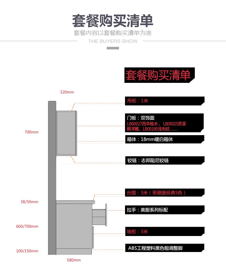 志邦厨柜 橱柜定制整体厨房橱柜整体橱柜 石英石台面现代简约原木纹理双饰面全屋定制家具 3米地柜+3米台面+1米上柜