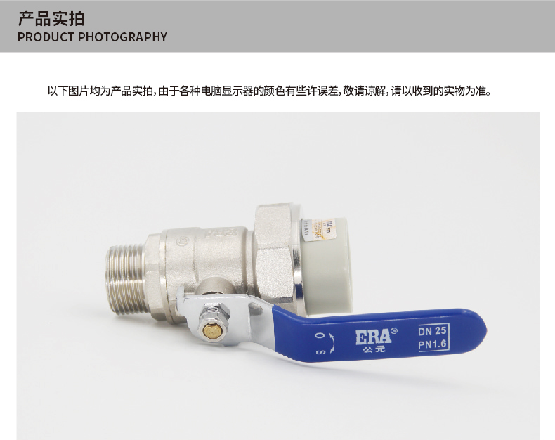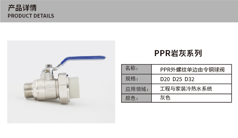ERA公元岩灰色系列PPR水管配件 外螺纹单边由令铜球阀