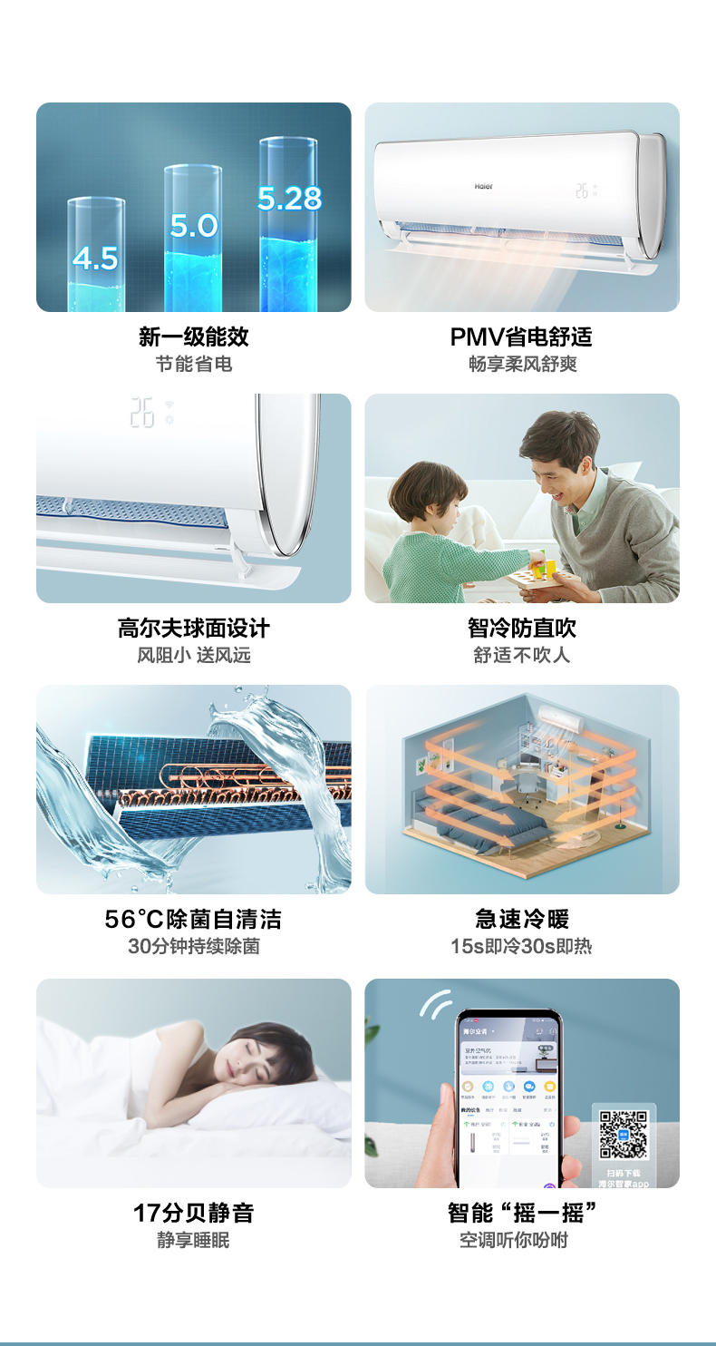 海尔(Haier)1.5匹 变频冷暖壁挂式卧室空调挂机 新一级能效 荣御 智能 光感护眠 KFR-35GW/81@U1-Uc