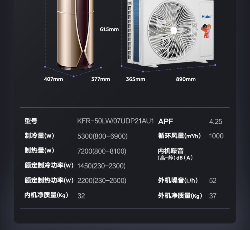 商品名称:海尔KFR-50LW/07UDP21AU1套机
