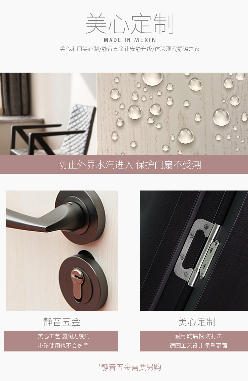 美心木门 现代简约静音门 实木复合门烤漆门 卧室木门N843