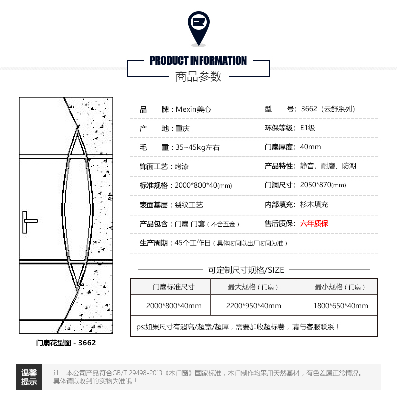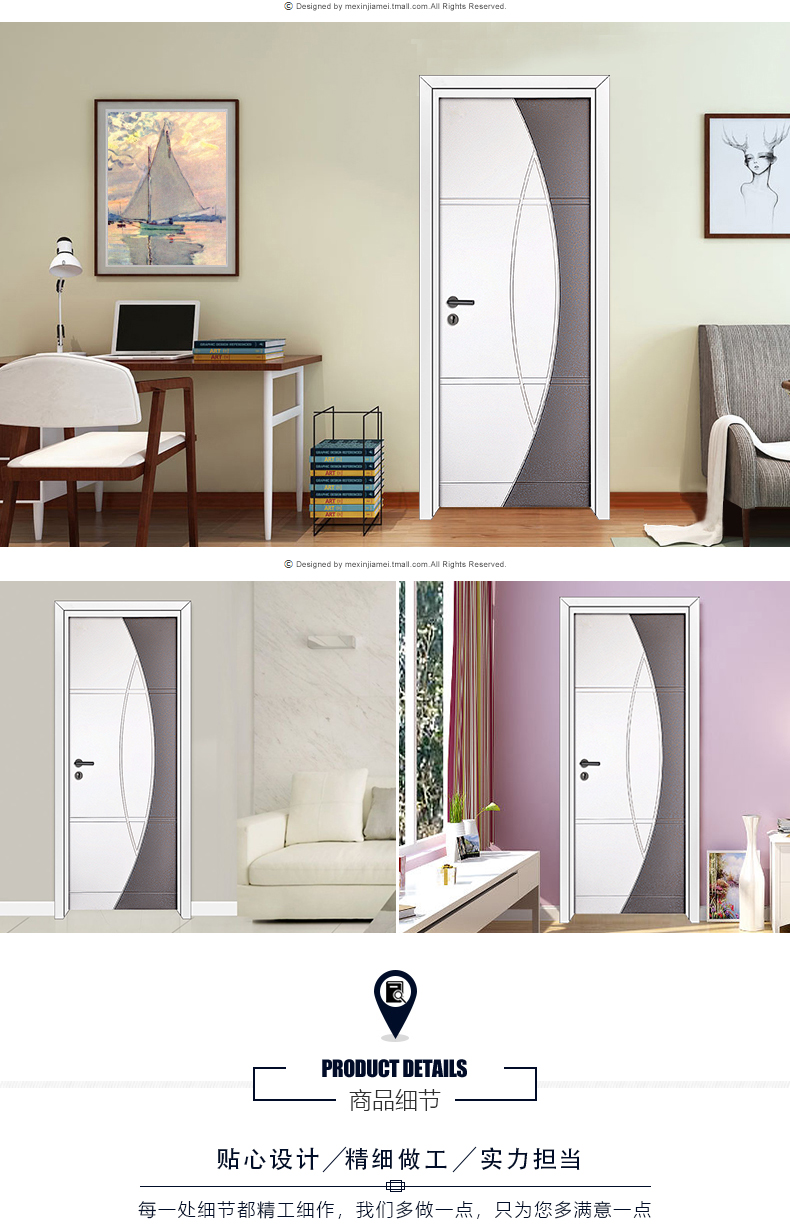 美心木门简约室内门卧室门实木复合油漆门定制门套装门3662