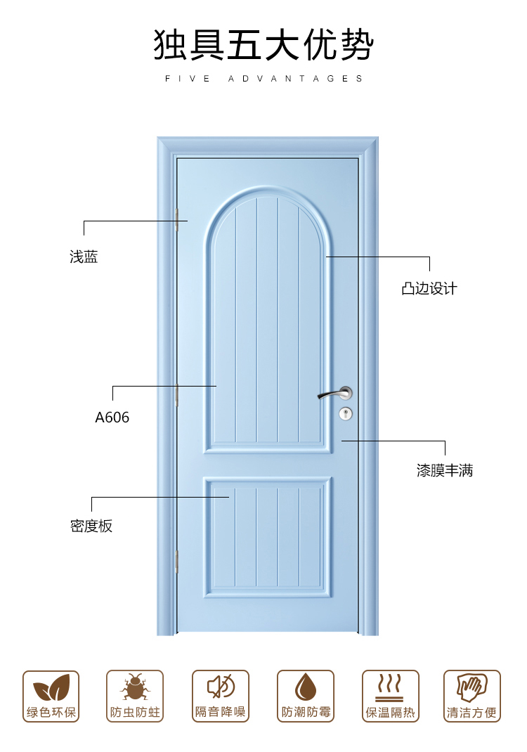 星星传奇木门烤漆简约卧室套装门厨房卫生间房间实木复合门A60615