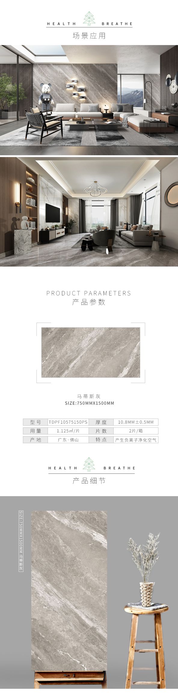 特地·负离子瓷砖 马蒂斯灰通体砖 祛甲醛 外墙地砖背景墙瓷砖