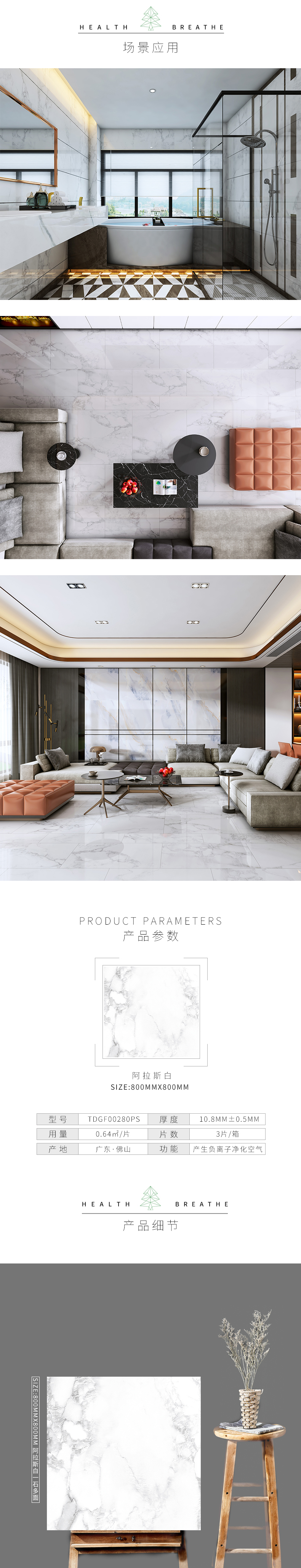 特地·负离子瓷砖 尚石阿拉斯白 除甲醛净化空气地砖背景墙客厅书房