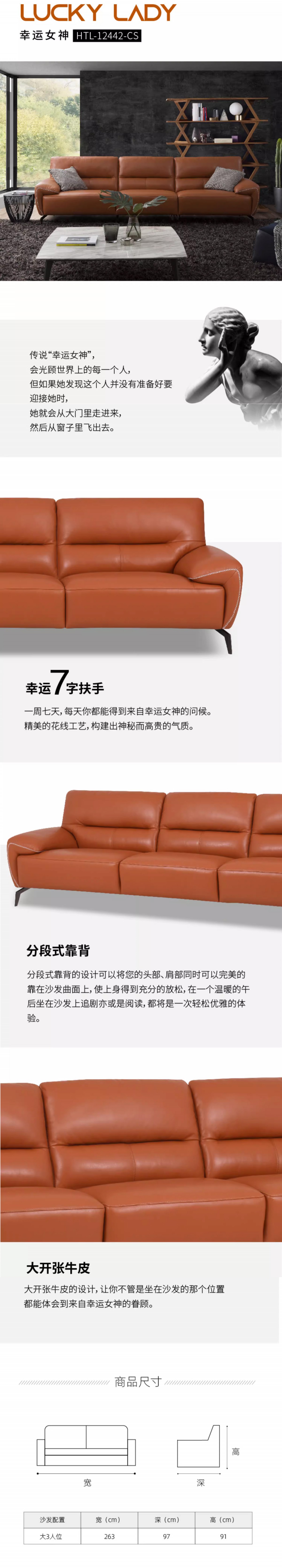 HTL头层牛皮简约现代客厅中小户型沙发组合定制幸运女神HTL-12442