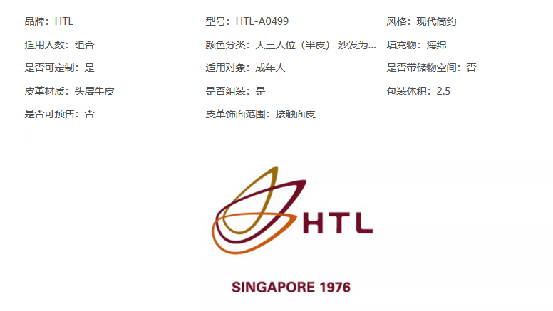 HTL沙发简约现代休闲沙发真皮头层牛皮全户型客厅纪念款A0499
