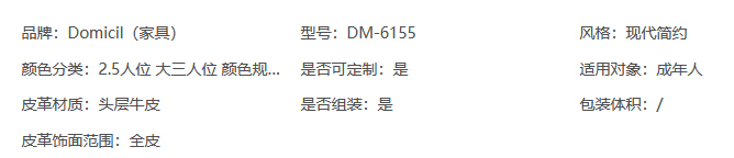 DOMICIL全进口头层牛皮沙发大三人位DM-6155