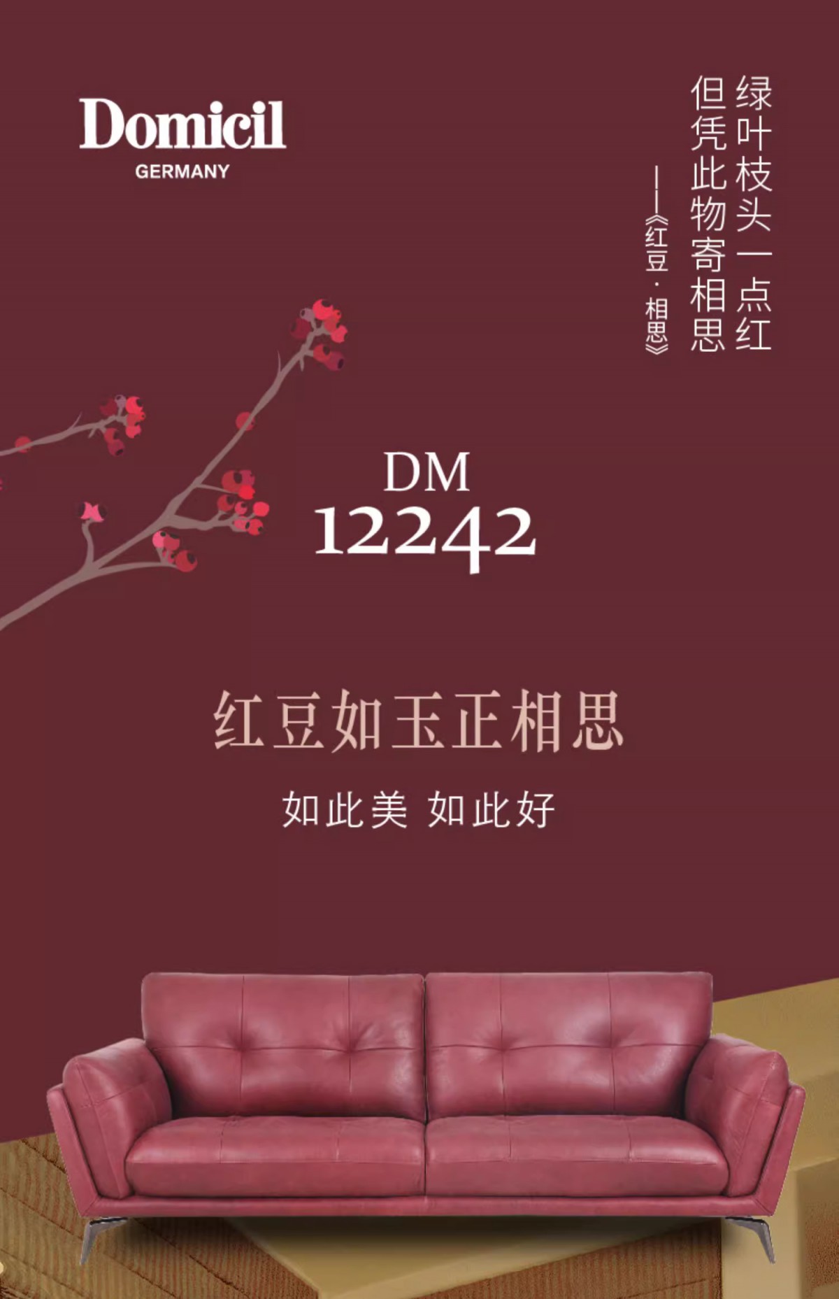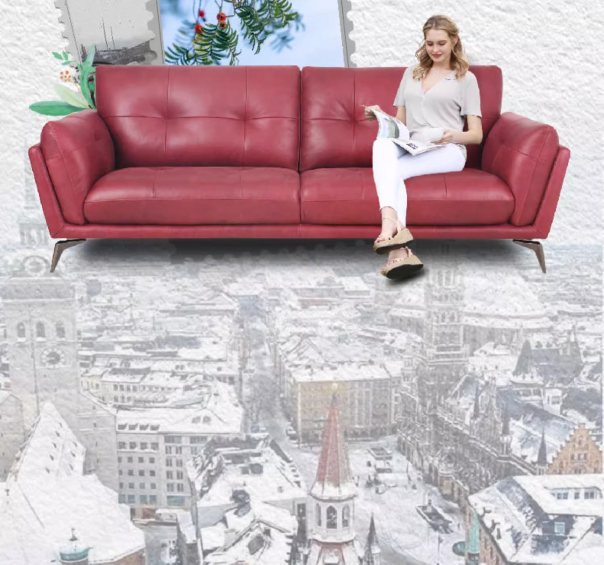 Domicil北欧真皮沙发客厅红豆三人位现代简约全牛皮沙发DM-12242