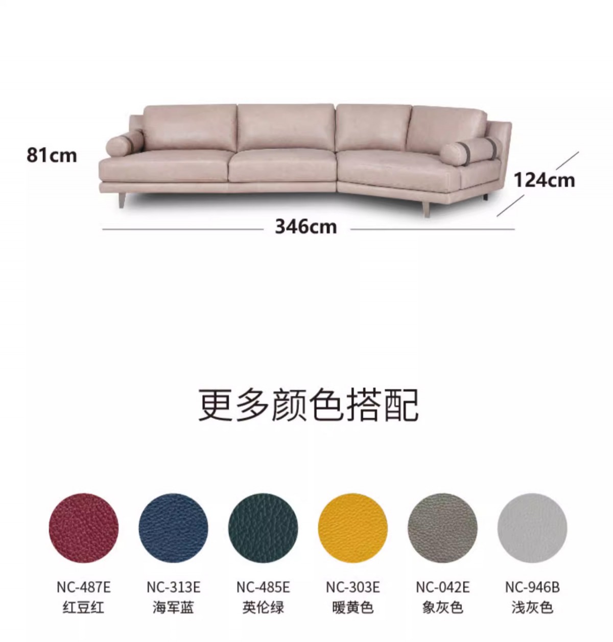 Domicil后现代三人位真皮沙发45度转角头层牛皮中大户型家具A0323